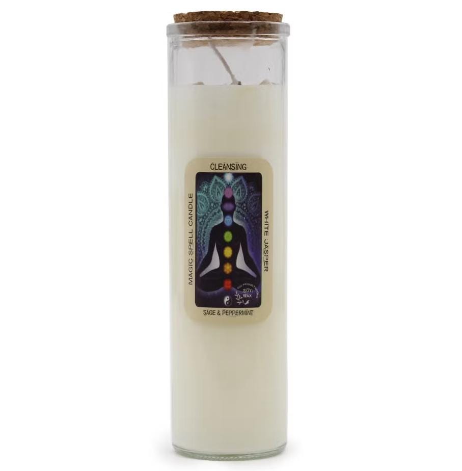 * The Cleansing candle smells of Sage & Peppermint and contains White Jasper gemstones.