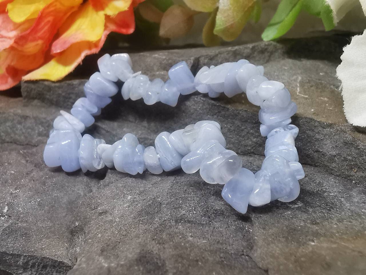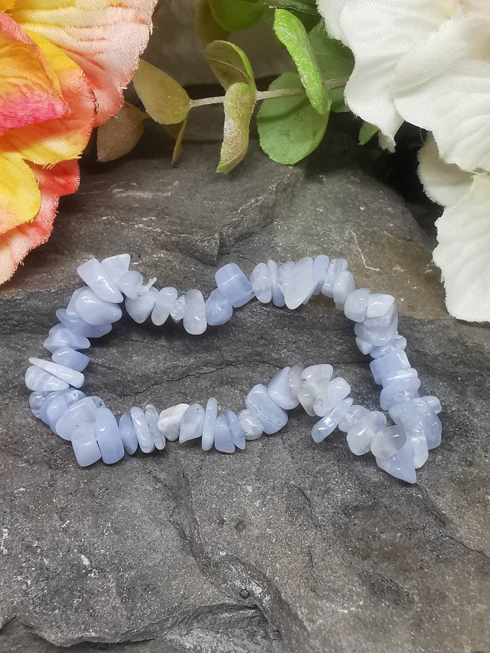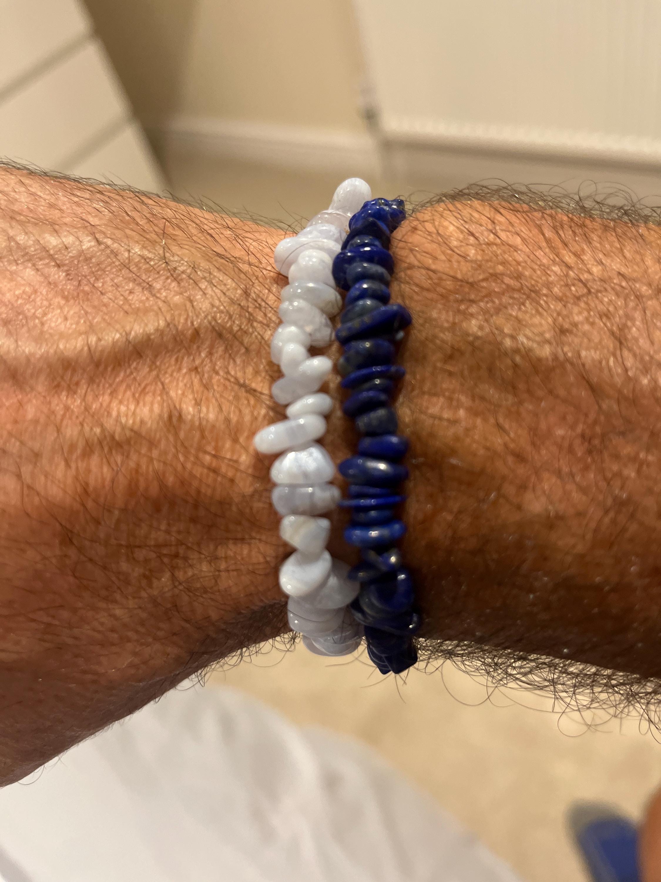 Every bracelet is lovingly handmade from beautiful pale blue chips of healing Blue Lace Agate, and small differences may occur as a result. This means your bracelet will be as unique as you are! All are handcrafted using genuine semi-precious gemstones and provide many health benefits. Plus, they look great on, and compliment all styles and outfits.