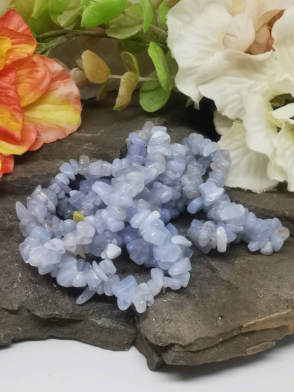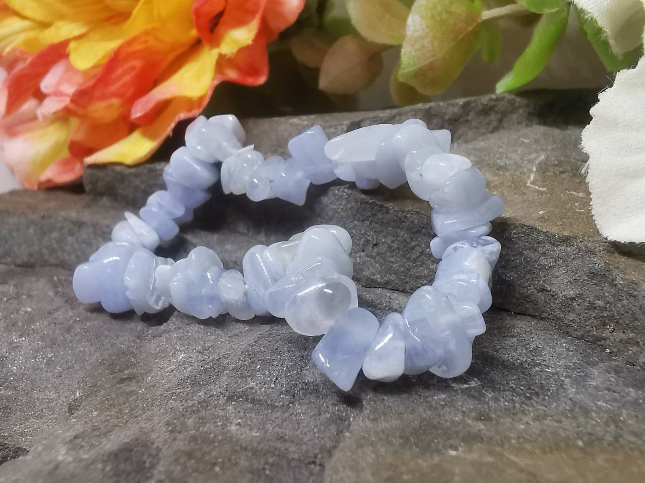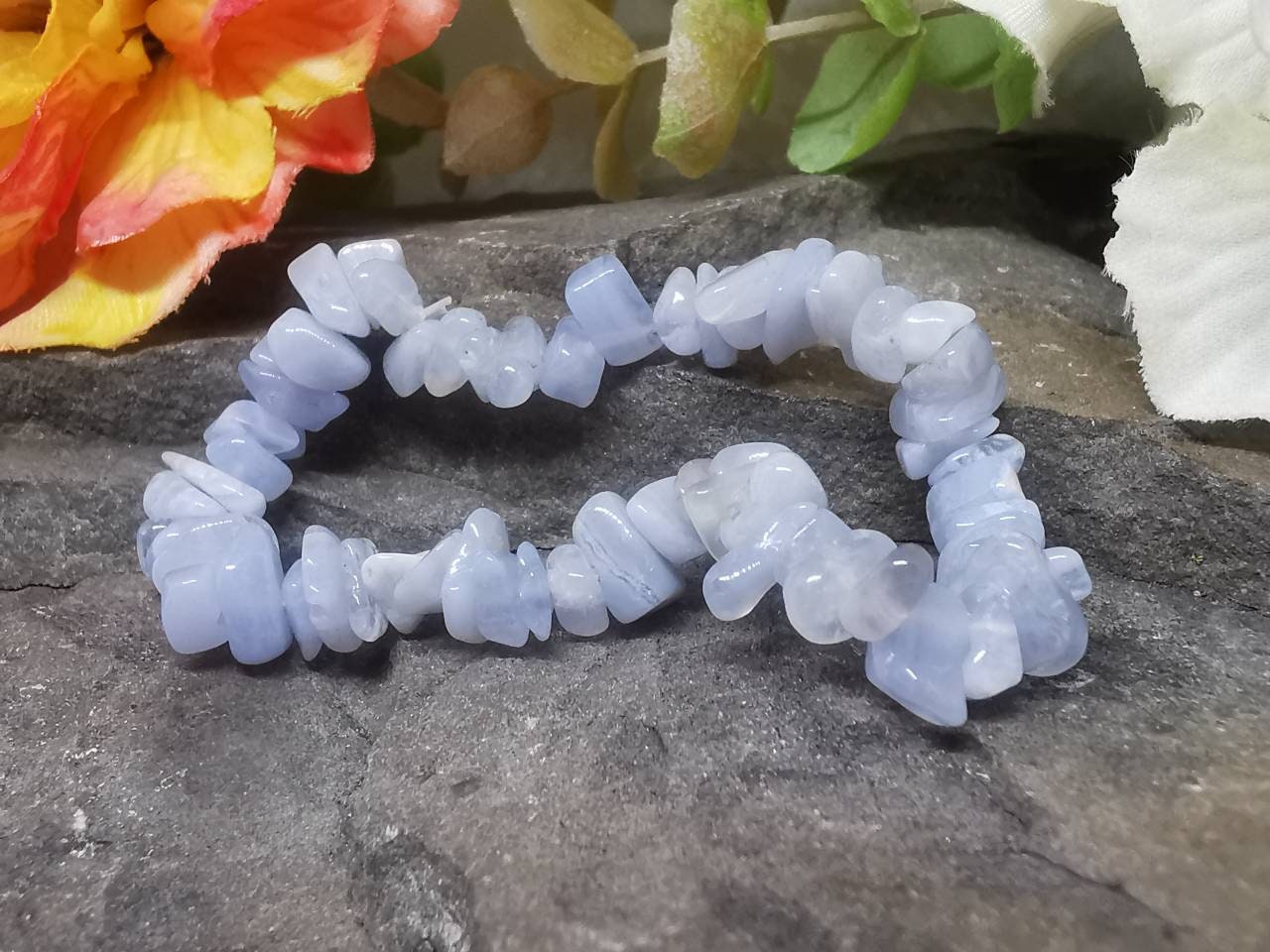 Every bracelet is lovingly handmade from beautiful pale blue chips of healing Blue Lace Agate, and small differences may occur as a result. This means your bracelet will be as unique as you are! All are handcrafted using genuine semi-precious gemstones and provide many health benefits. Plus, they look great on, and compliment all styles and outfits.