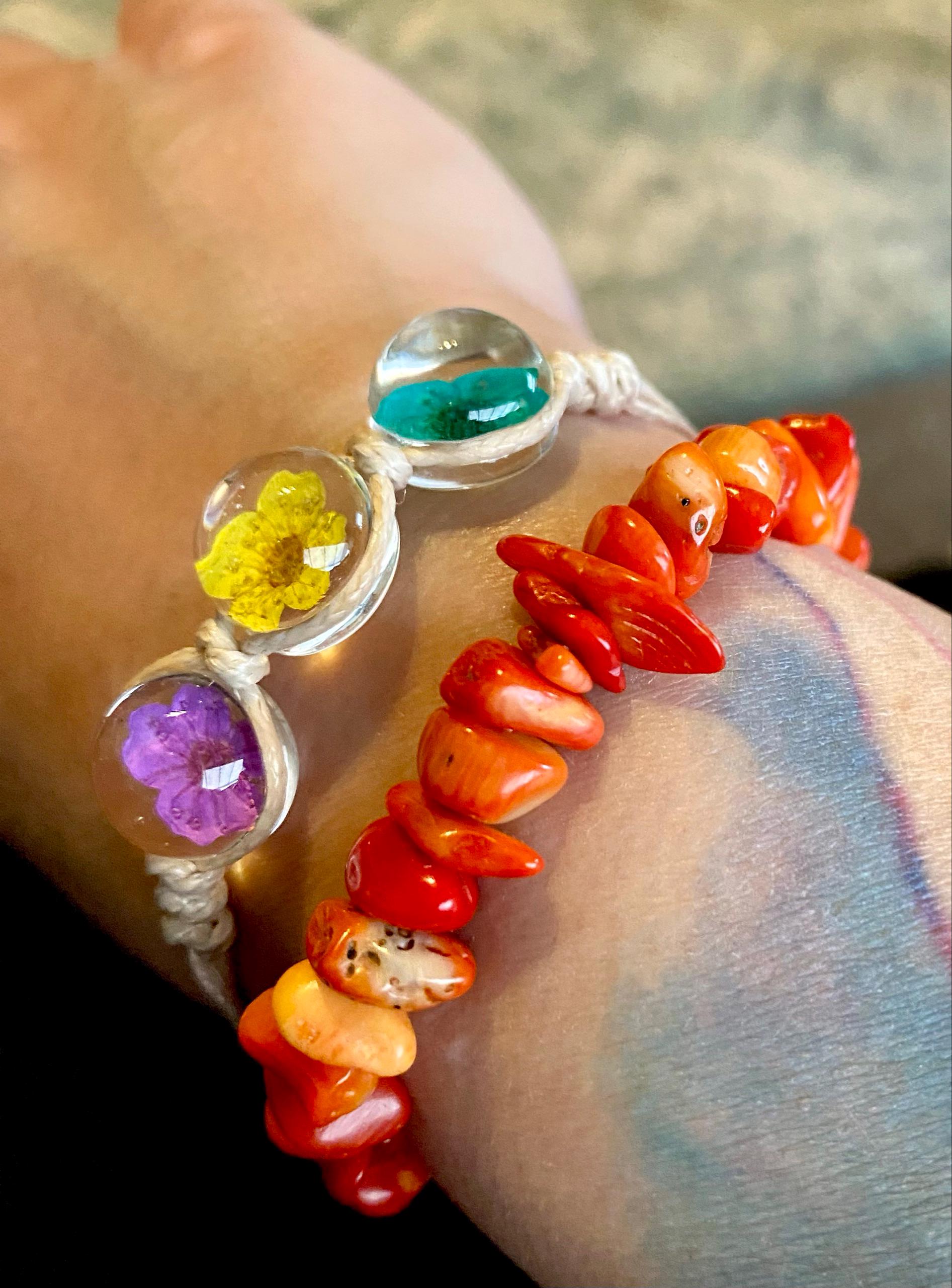 Each bracelet is handmade from chips of Coralite, and small differences may occur as a result. Each chip measures up to 1cm across, and all are irregularly shaped.